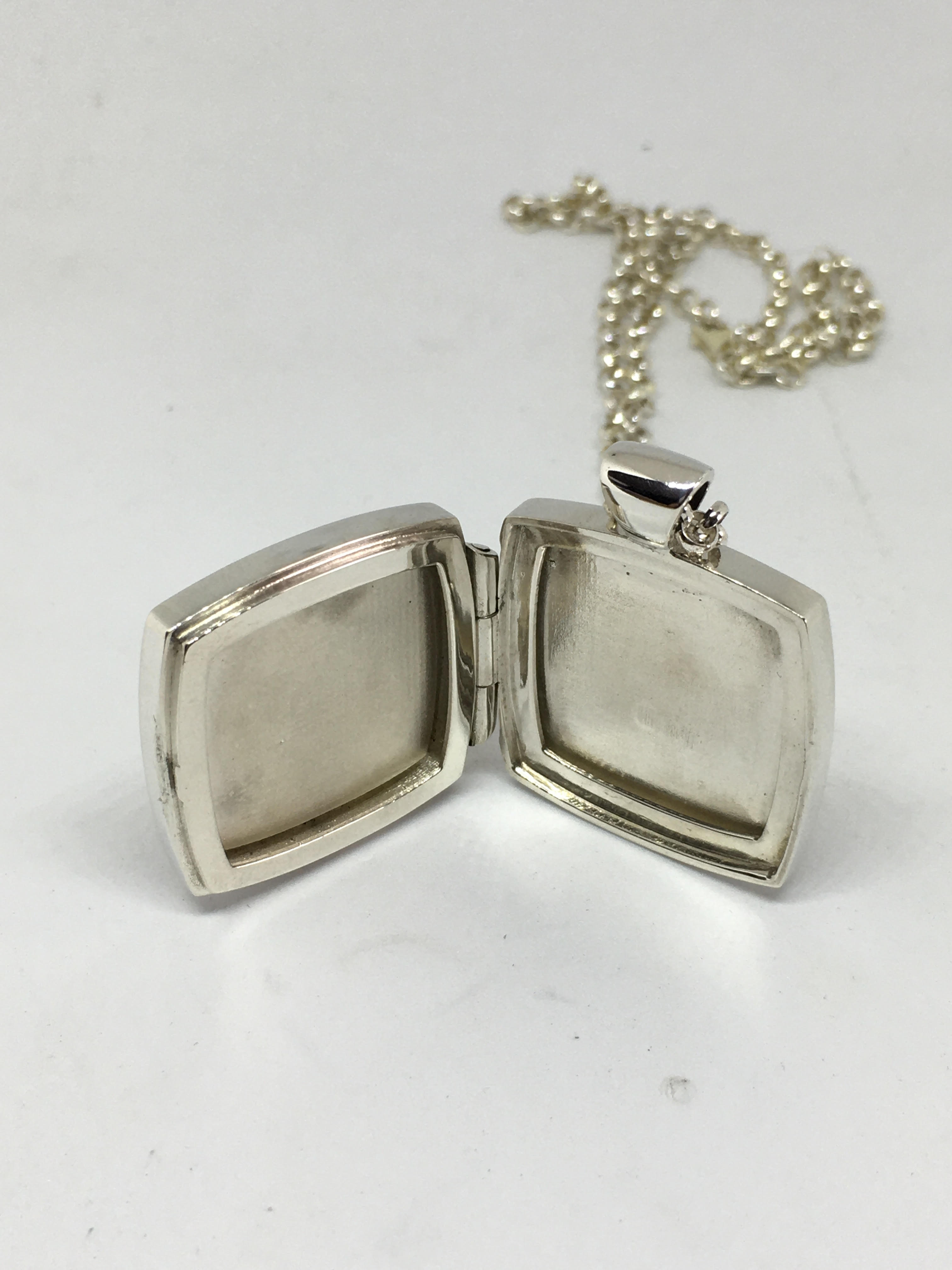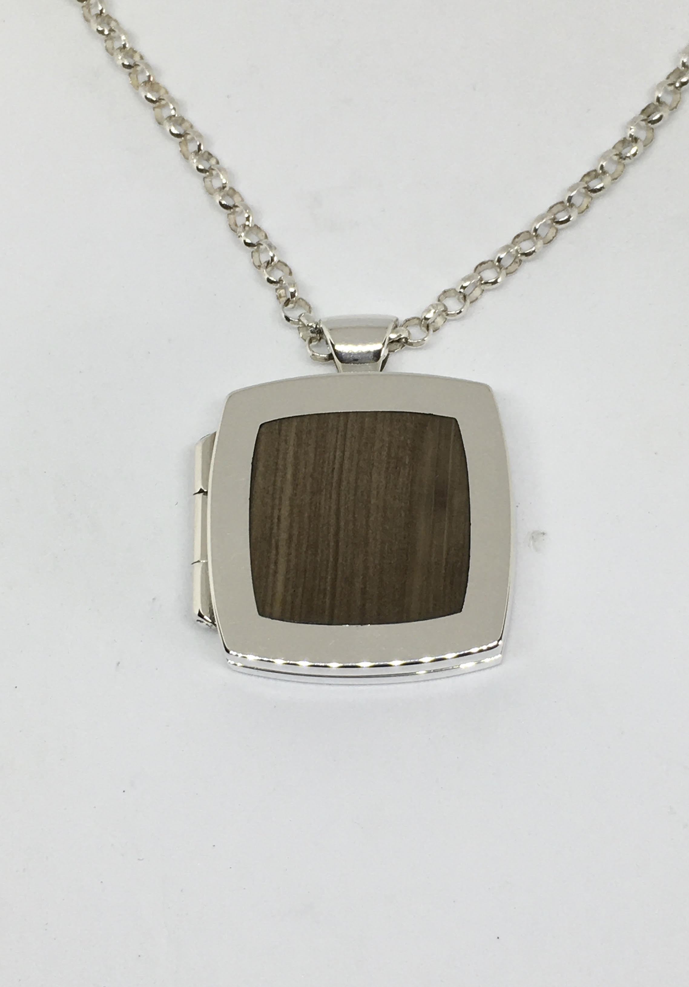 - Sterling Silver Locket set with 'Western Qld' petrified wood and solid silver chain. Size 27 x 27mm